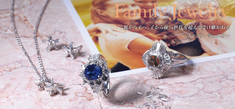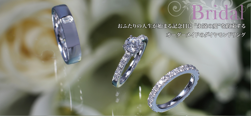 ダイヤモンド、ルビー、サファイヤ、エメラルドなど、原材料となる裸石は、この道40年以上のキャリアをもつ目利きの店主が厳選して仕入れております。脇石となるメレーダイヤ(0.1ct以下のダイヤモンド)やファンシーダイヤのカット・クラリティにもこだわり、決してまとめ買いはせず、1粒1粒まで目を通して納得のいくものしか仕入れません。